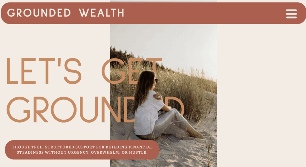 Grounded Wealth is a brand that feels warm and inviting without sacrificing seriousness. A website that guides thoughtfully without pushing. A digital presence that honors the emotional work of changing your relationship with money.