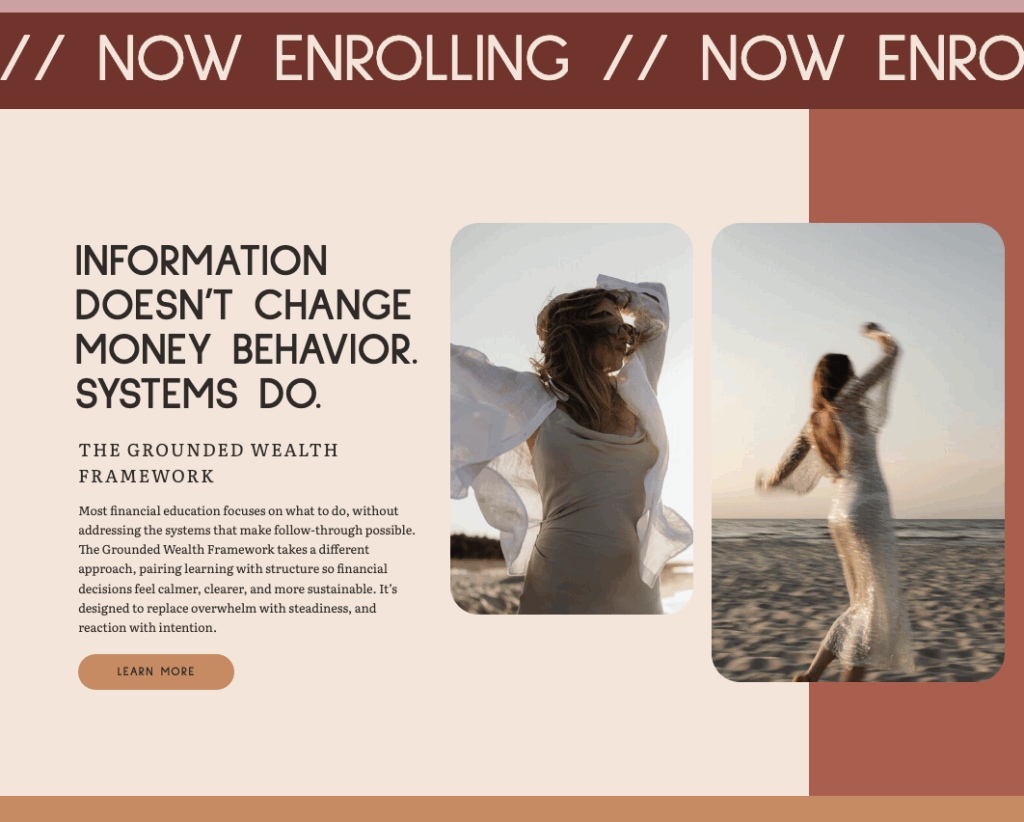 The Grounded Wealth Framework isn’t marketed as “a course.” It’s positioned as a systems-based financial practice. The messaging emphasizes implementation, behavior change, and what you do with the information—not just consuming content.