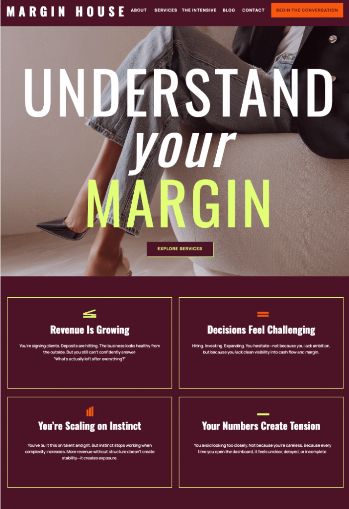 Margin House reflects a business that has grown into its own authority and a designer who understands that a website’s job isn’t to impress. It’s to make the right person feel seen.